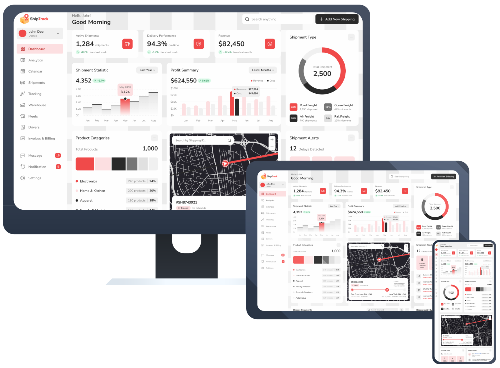 The logistics industry often struggles with fragmented data and delayed visibility. ShipTrack was conceived as a comprehensive digital solution to bridge the gap between physical cargo movement and real-time data monitoring. Developed with a focus on high-performance data processing and a seamless user experience, ShipTrack centralizes fleet management, warehouse operations, and multi-modal logistics into a single, unified interface. This case study explores the architectural journey of building a robust, scalable system capable of handling complex freight lifecycles from dispatch to final invoicing.